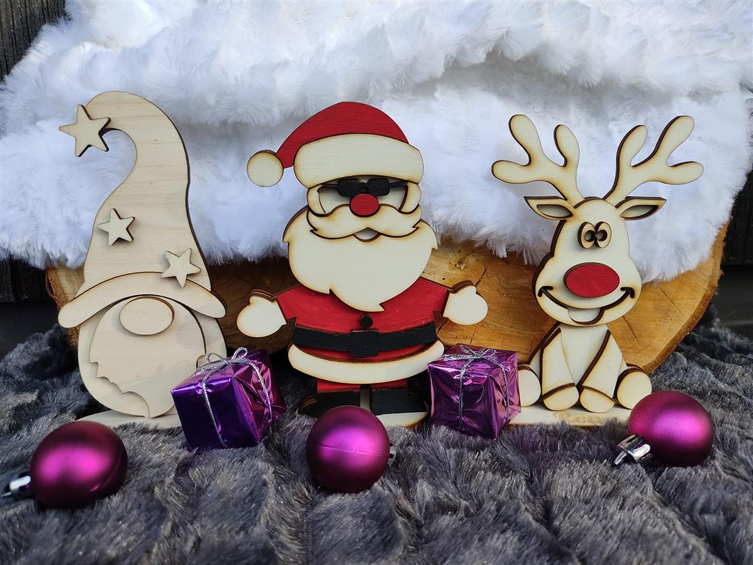 Škrat, božiček ter jelenček, figure za okras, višine cca. 15cm. Sami ga lahko pobarvate. Po želji dodamo tudi napis na podstavek.