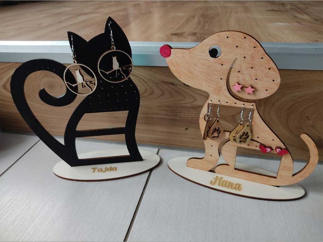 Stojalo za nakit mačka, kuža ali palček + 3je pari uhanov .
